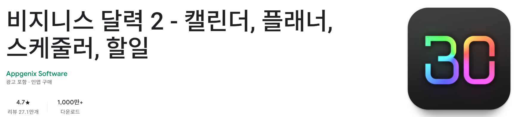 - "비지니스 달력은 시간 단위 관리에 좋고 구글 캘린더와 밀림 없이 잘 연동되어 만족합니다."