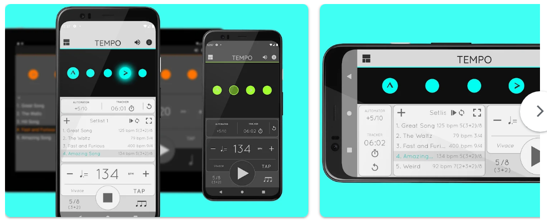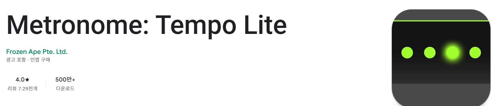 - "Metronome Beats는 화면이 큼직해 드럼 칠 때 보기 편하고 속도 조절이 세밀해 만족합니다."