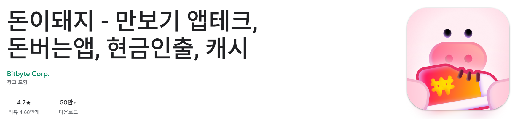 7. 돈이돼지 - 만보기 앱테크, 돈버는앱, 현금인출, 캐시