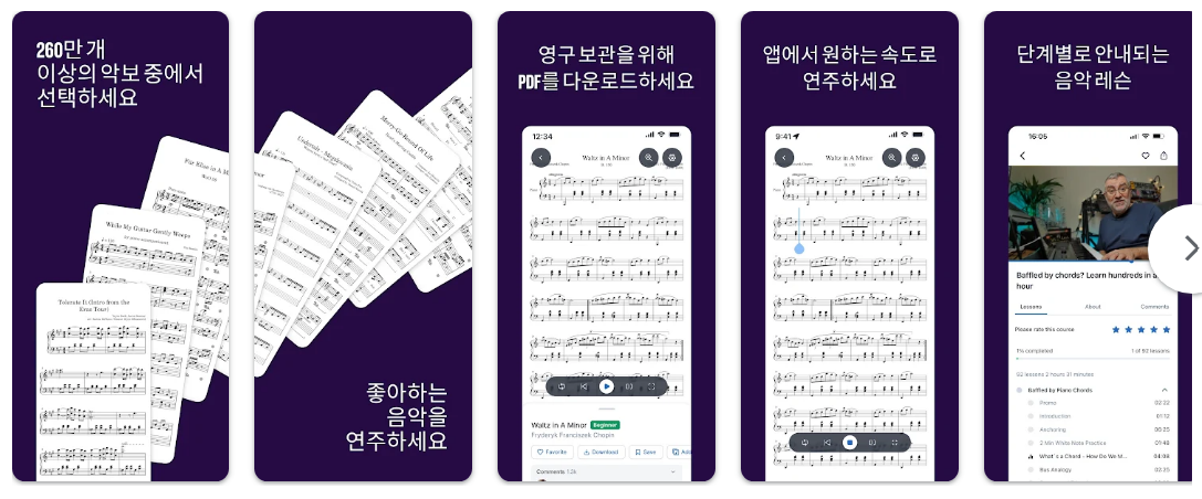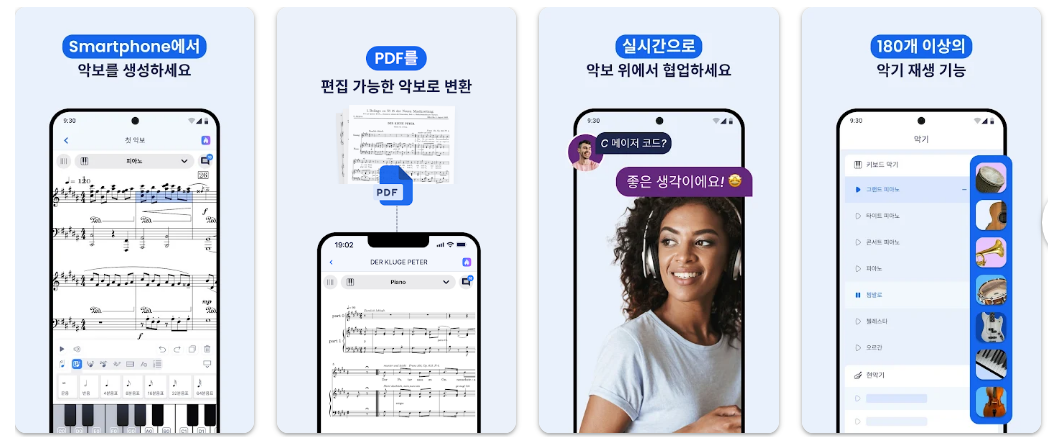 여러 명의 사용자가 하나의 악보에 동시에 접속하여 편집할 수 있는 강력한 실시간 협업 기능을 자랑합니다. 교육 현장에서도 교사와 학생 간의 피드백 공유 도구로 활발히 사용되며 클래식부터 현대 음악까지 모든 장르의 사보 작업을 지원합니다.