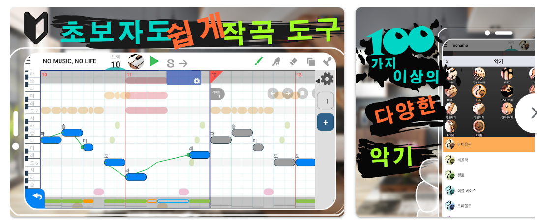 어린이부터 성인까지 폭넓은 사용자층을 고려한 간결한 사용자 인터페이스를 제공하며 창의적인 아이디어를 즉시 기록하는 데 특화되어 있습니다. 작업 도중 실시간으로 곡을 재생하며 수정할 수 있어 영감이 떠오를 때 빠르게 대처하기 좋은 앱입니다.
