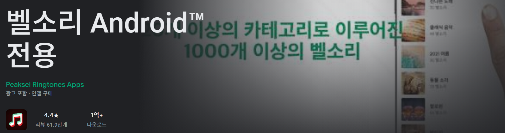 - 방대한 카테고리: 팝, 힙합, 라틴, 동물 소리 등 25개 이상의 테마에서 벨소리 선택이 가능합니다.